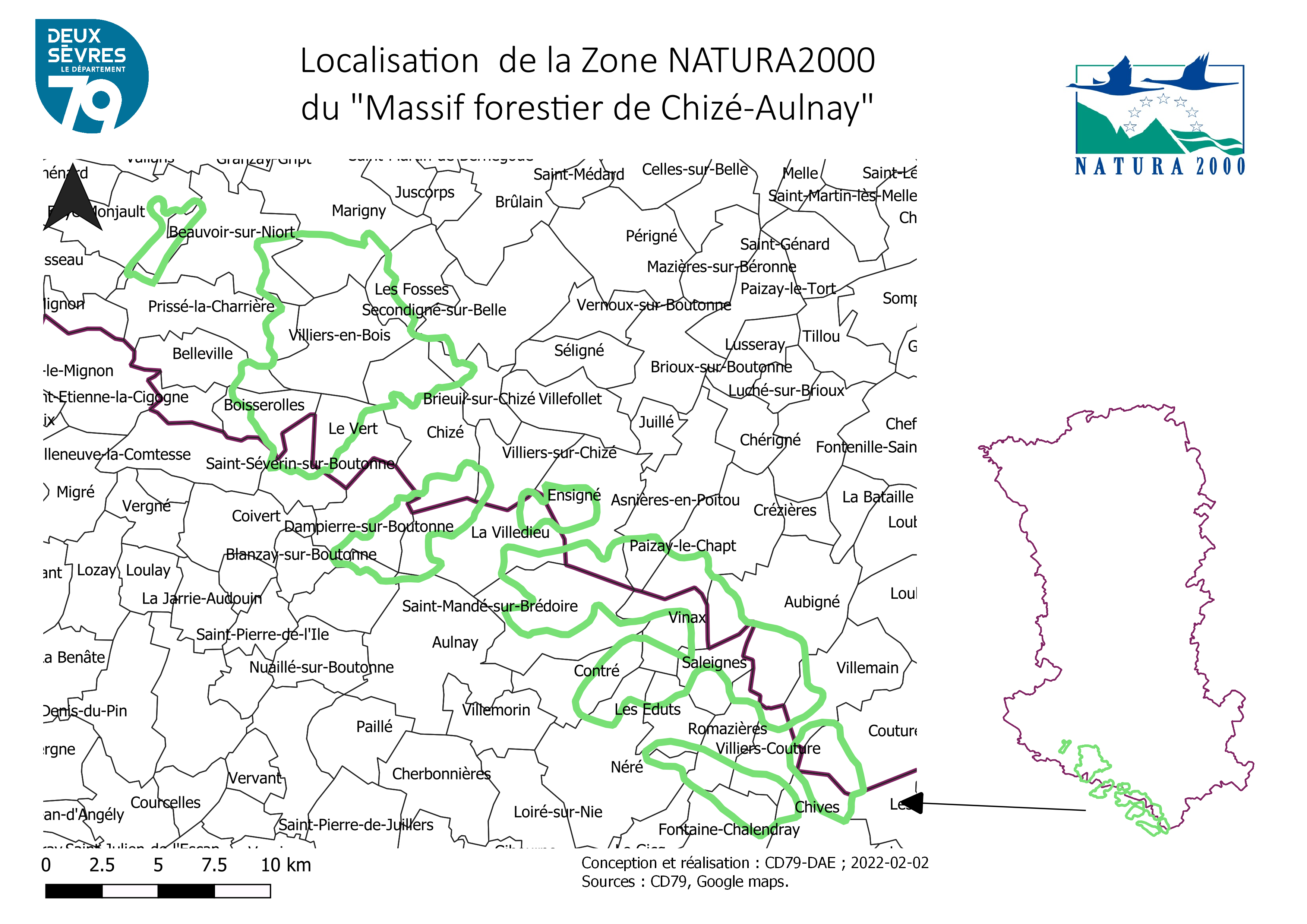 Le site NATURA2000 "Massif Forestier de Chizé-Aulnay" est constitué de six massifs forestiers de taille variable, relique de l'antique Sylve d'Argenson. Il est constitué majoritairement de forêt caducifoliée développée sur des calcaires jurassiques. Au sein de la chênaie pubescente, subsistent des pelouses et des ourlets calcicoles thermophiles très riches en biodiversité. Ce massif forestier à la particularité d'abrité un riche cortège d'espèces méditerranéenne qui sont en limite nord de leur aire de répartition.
